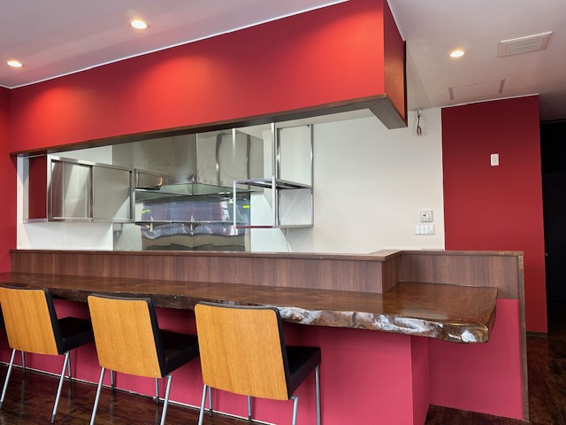 厨房設備の計画施工設置・さがり壁施工・カウンター施工・アプローチ(レンガ部分)の修繕設計施工・サッシ塗装
